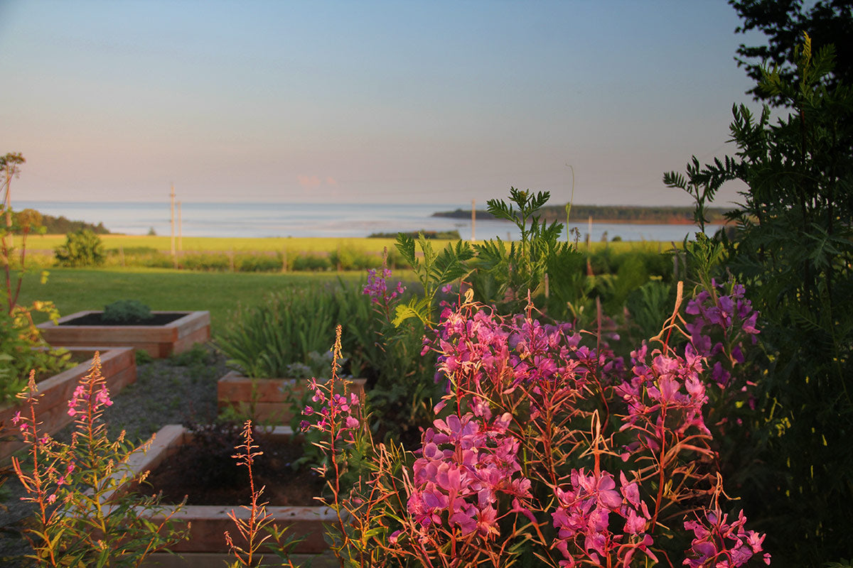 Our property overlooks the stunning Northumberland Strait. You can view our vineyard and herb gardens that are used in our products during the summer season.
