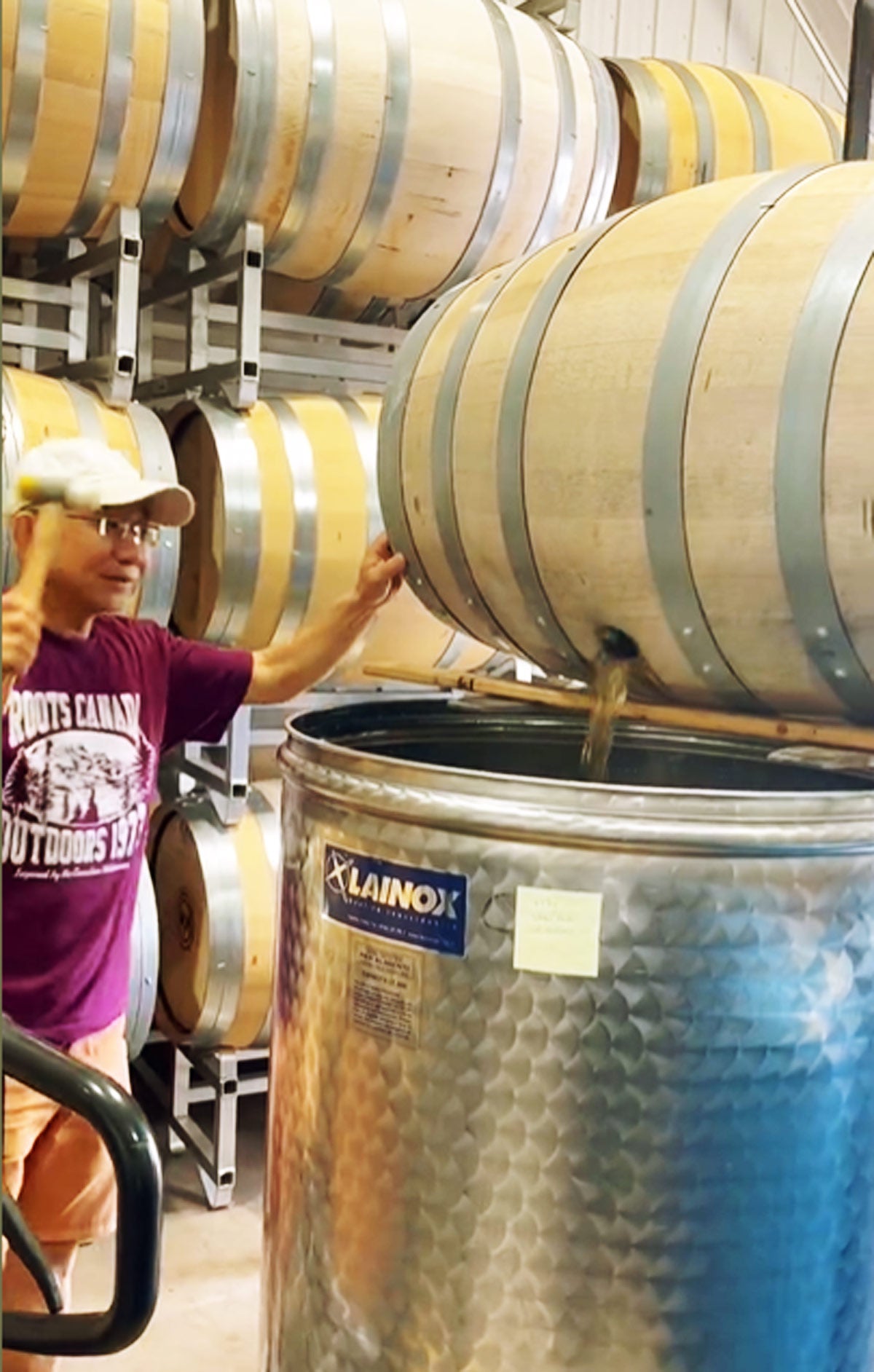 We batch distill our Brandy, Rum and Whisky with great care to our own original recipes. These distillations are then aged on site in Canadian Oak barrels.